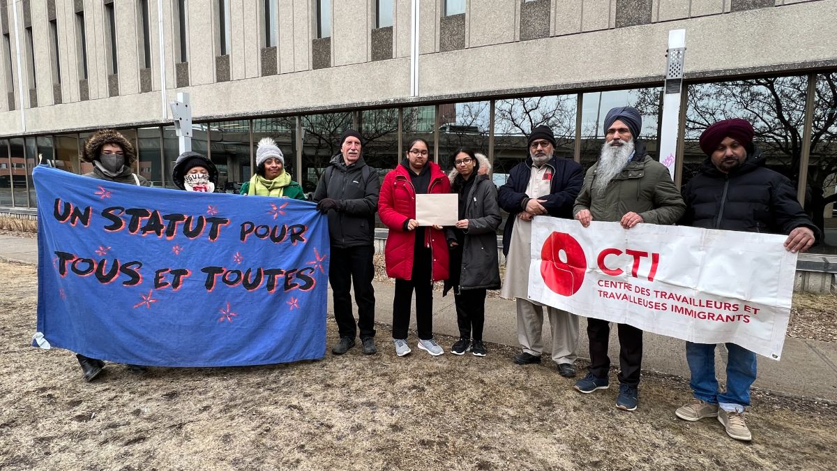 Des personnes migrantes à statut précaire et des membres du Centre des travailleurs et travailleuses immigrants (CTI) de Montréal ont déposé lundi, au bureau de Justin Trudeau, des lettres demandant la suspension immédiate des détentions et des expulsions de migrants, l’implantation d’un programme fédéral de régularisation des personnes sans statut et la réouverture immédiate du chemin Roxham.