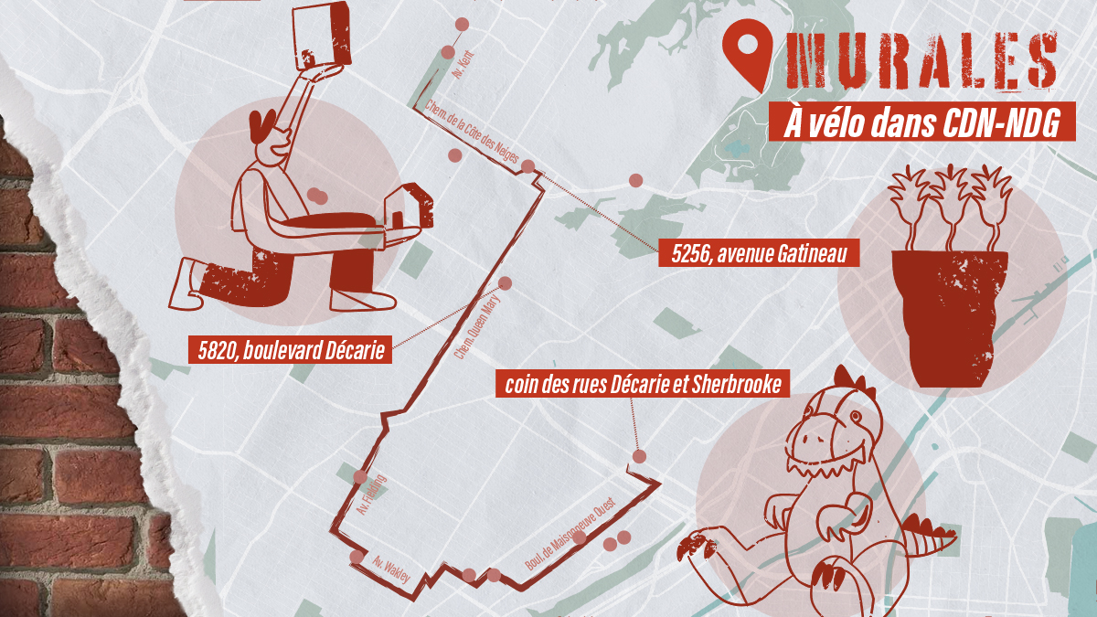 Si l’arrondissement de Côte-des-Neiges–Notre-Dame-de-Grâce compte de bien belles œuvres tout le long de ses murs, pour ce parcours, il va falloir sortir la bicyclette. Les lieux où se trouvent les murales sont en effet plutôt éloignés les uns des autres.