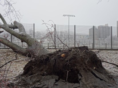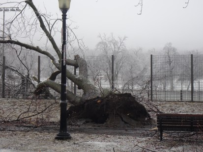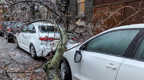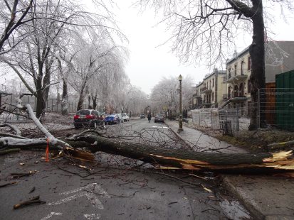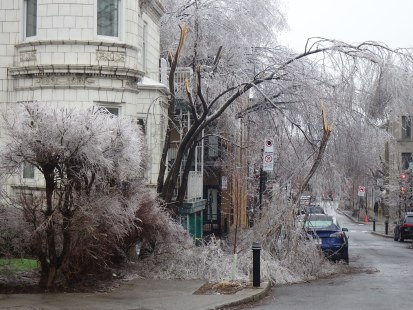 Des branches bloquent complètement des routes, d’autres sont tombées sur des infrastructures ou des voitures tandis que certains arbres sont complètement déracinés. Les équipes d’Hydro-Québec et de la Ville de Montréal sont à pied d’œuvre pour réparer les dégâts causés par la tempête de verglas, mais plusieurs jours seront nécessaires pour nettoyer tout le territoire.