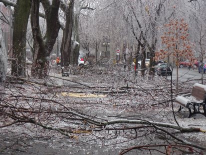 Dur constat pour les Montréalais jeudi, au lendemain de la pire tempête de verglas depuis 1998. Les rues de la métropole sont dévastées, comme le montrent plusieurs photos prises par des citoyens.
