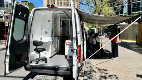 Vendredi, 9h, devant la Mission St-Michael. Des personnes en situation d’itinérance font la file pour rencontrer les intervenants et l’infirmière qui les accueillent sous l’auvent d’une fourgonnette blanche stationnée. Le véhicule, faisant office de clinique mobile, sillonne depuis avril les rues de Montréal pour venir en aide aux personnes vulnérables, où qu’elles soient.