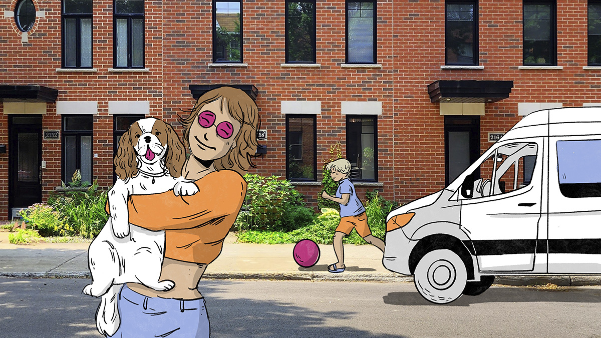 En plus d’une vie à deux (et éventuellement à quatre, avec deux enfants) dans un beau condo de Mercier–Hochelaga-Maisonneuve, la jeune femme queer de 27 ans souhaiterait partir quand bon lui semble à bord de sa van.