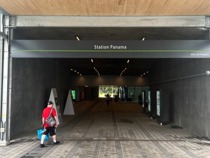 À bicyclette, plusieurs options existent pour se rendre à la station Panama. Côté nord, on y accède par la rue Philippines ou la piste multifonctionnelle du boulevard Taschereau. Côté sud, on peut emprunter le sentier qui relie la station au secteur T de Brossard, via l’avenue Tisserand. Une fois à la station, 200 espaces de stationnement pour vélos sont disponibles, dont 100 sont couverts. Ils sont situés près de l’entrée nord de la station ainsi que du côté sud du tunnel Panama.
