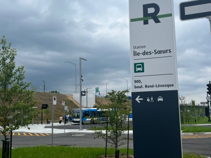 De même, la station Île-des-Sœurs propose trois quais pour les autobus et des arrêts d’autobus sur rue sur le boulevard René-Lévesque. Quatre lignes d’autobus se rendent à la station, du côté nord ou sud: les lignes 4, 21, 32 et 132.