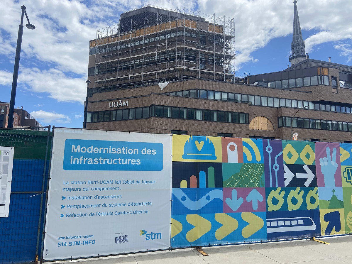 Les travaux de réfection majeure de l’édicule Sainte-Catherine s’inscrivent dans le cadre d’un projet de modernisation de la station Berri-UQAM. Les travaux extérieurs, qui ont débuté au mois de juin 2022, visent à remplacer le système d’étanchéité protégeant le toit souterrain de la station.