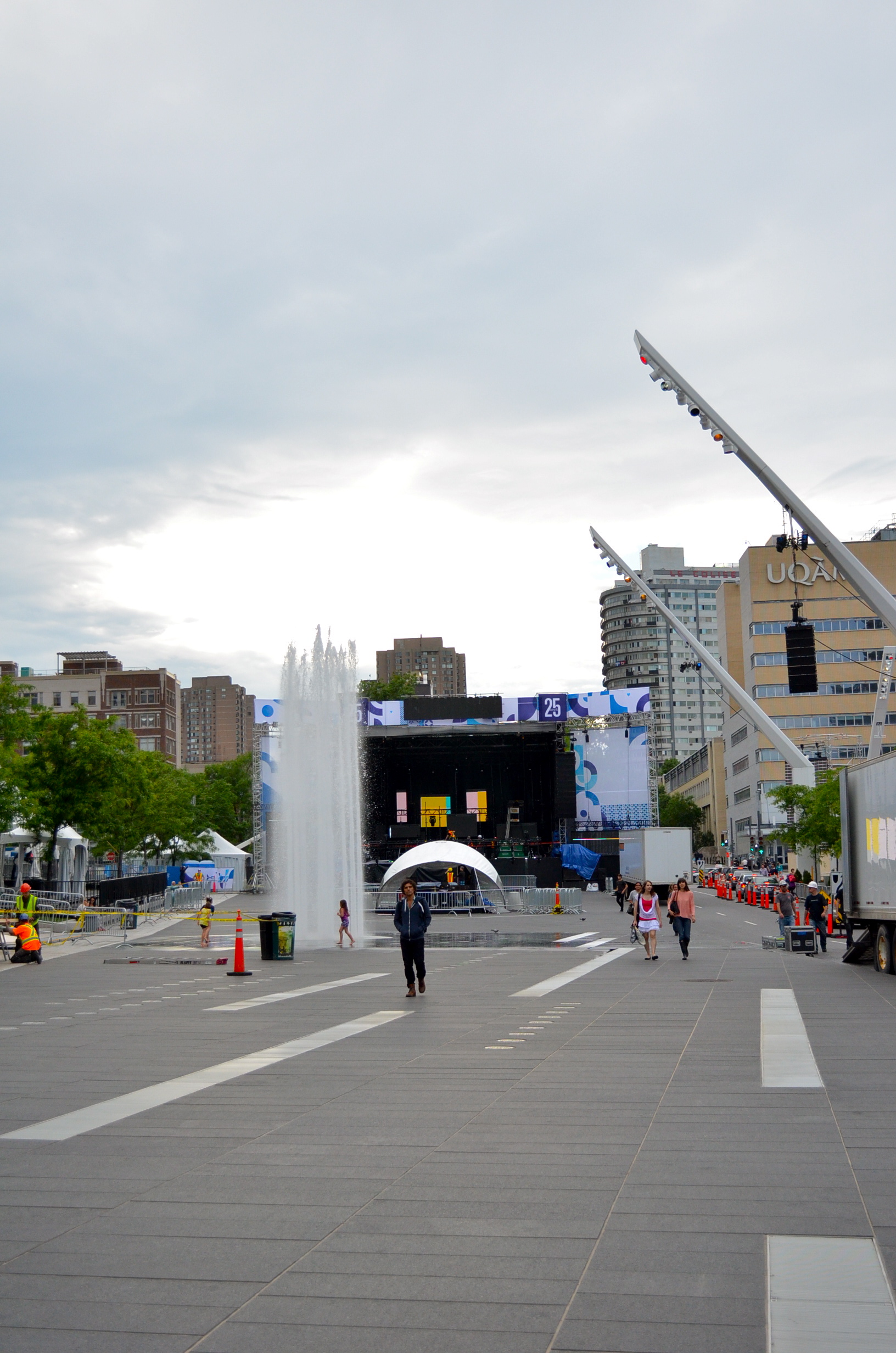 Pendant la visite, le public a accès au centre de contrôle du Quartier des spectacles. Dans la minuscule pièce, sise au 6e étage de la Maison du Festival de jazz, on peut presque tout contrôler : jets des fontaines, sons des hauts parleurs, projections sur les bâtiments ou éclairage. Le tout est rendu possible grâce au réseau de fibre optique de 5km tissé sous le Quartier. IPad à la main, les employés peuvent effectuer les mêmes contrôles en se promenant sur le site.