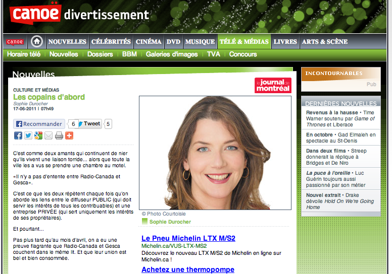 Dans l’article litigieux, Sophie Durocher laissait entendre qu’il existait une entente secrète entre Radio-Canada et Gesca. «C’est comme deux amants qui continuent de nier qu’ils vivent une liaison torride… alors que toute la ville les a vus se prendre une chambre au motel», écrivait-elle.