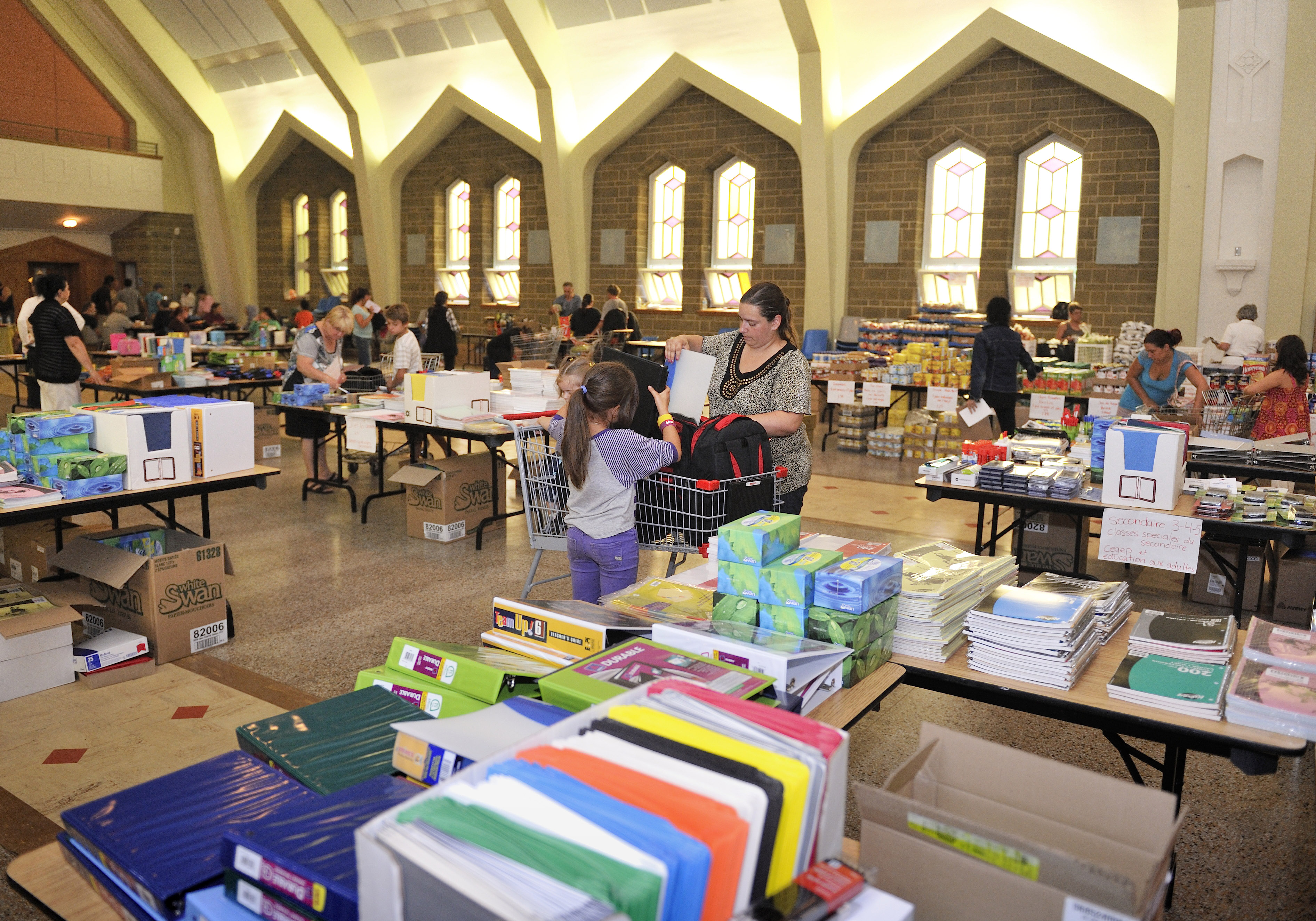Dans 18 Magasins-Partage, chaque enfant peut choisir selon ses goûts et ses besoins un sac d’école, des fournitures scolaires ainsi qu’une boîte à lunch isolante. Les familles peuvent se procurer des denrées alimentaires, notamment pour le petit-déjeuner et la boîte à lunch. Une visite au Magasin-Partage permet aussi de référer les familles vers des ressources d’aide complémentaires. Au total, l’an dernier, 476 828 $ en effets scolaires, en nourriture et en titres de transport ont été distribués.