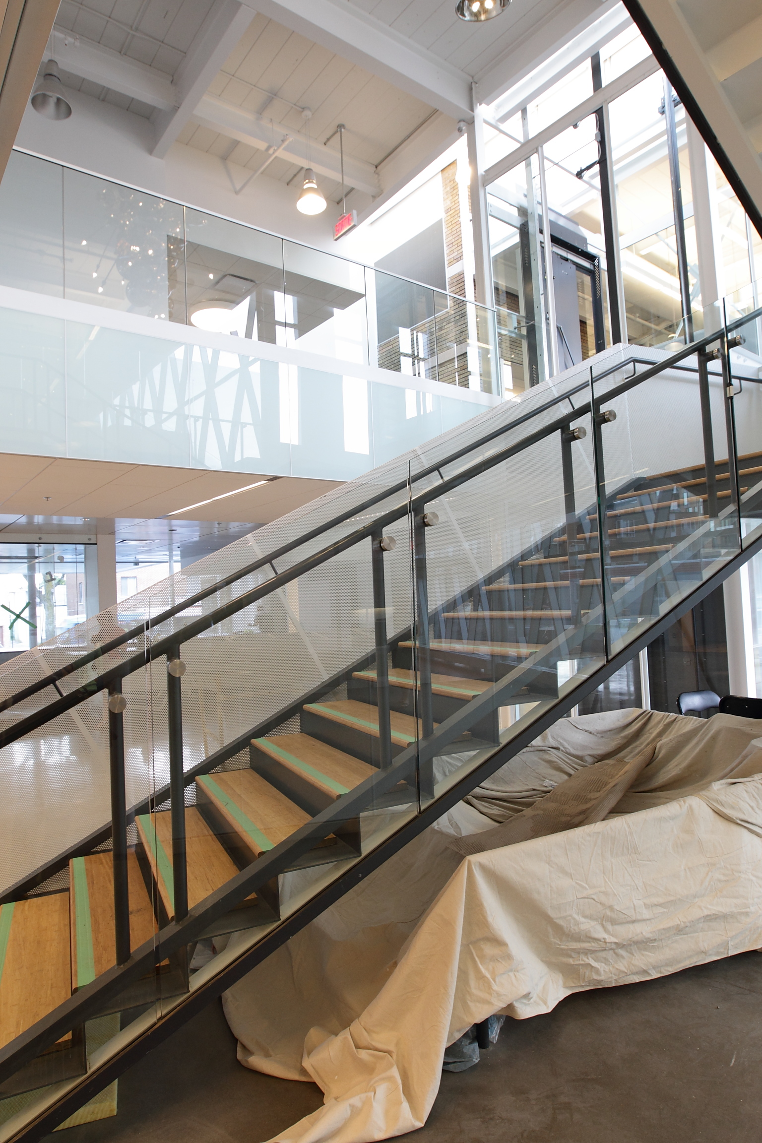 «On voulait que ce soit un lieu de culture, un lieu vert, mais aussi un lieu technologique, à l’image de la société d’aujourd’hui. Nous avons donc créé la Lanterne, une salle dont les murs sont faits de verre sérigraphié, dans laquelle se donnera des ateliers sur l’image en mouvement et les nouveaux médias. Grâce à un partenariat avec la Société des arts technologiques (SAT), des projections de jeux de lumière y seront régulièrement visibles à partir de la rue.»