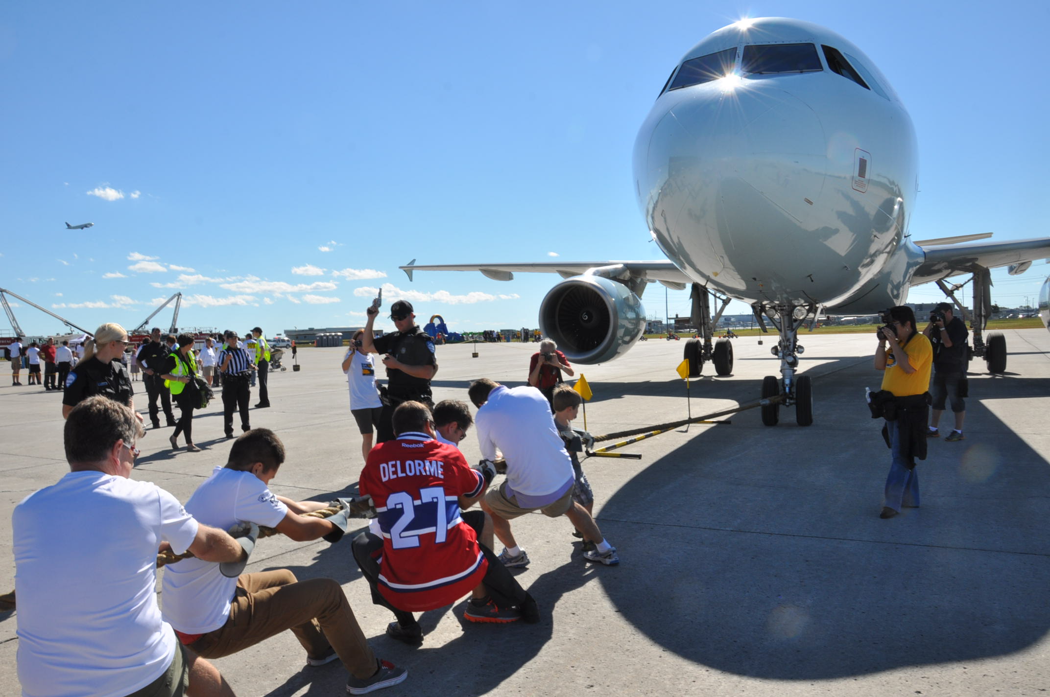 C’est la 13e présentation de l’événement. Pour une bonne cause, une vingtaine d’équipes de 15 personnes ont tenté de tirer à la corde, à force de bras, un avion de ligne de 73 000 kilos sur une distance de 3,7 mètres, et ce, le plus rapidement possible.