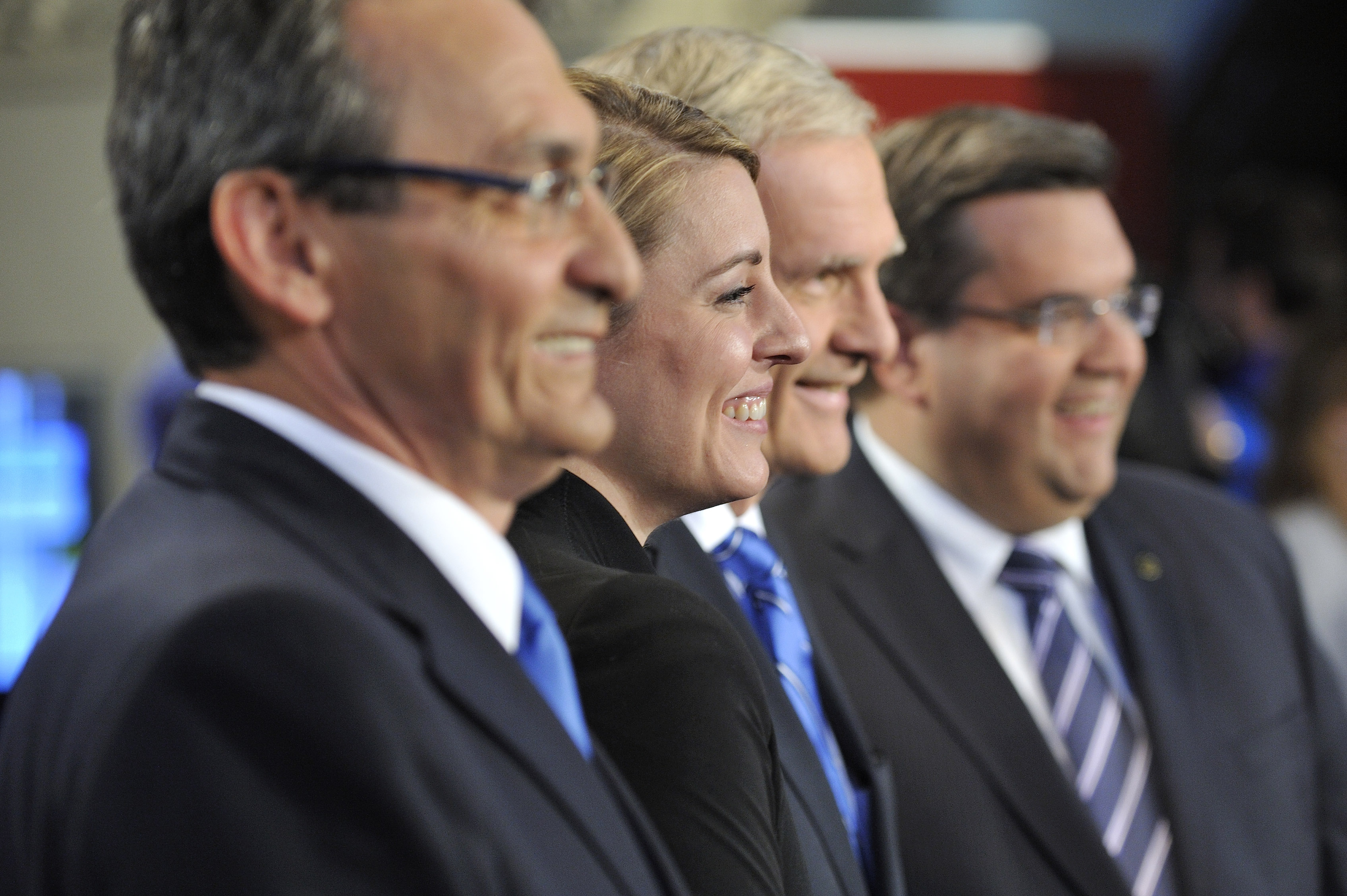 Les aspirants-maires, tous sobrement vêtus de noir, avec des cravates bleues chez les hommes, ont répondu chacun leur tour, sans droit de réplique aux questions de citoyens à propos d’économie, de transport, de valeurs et de jeunes familles.