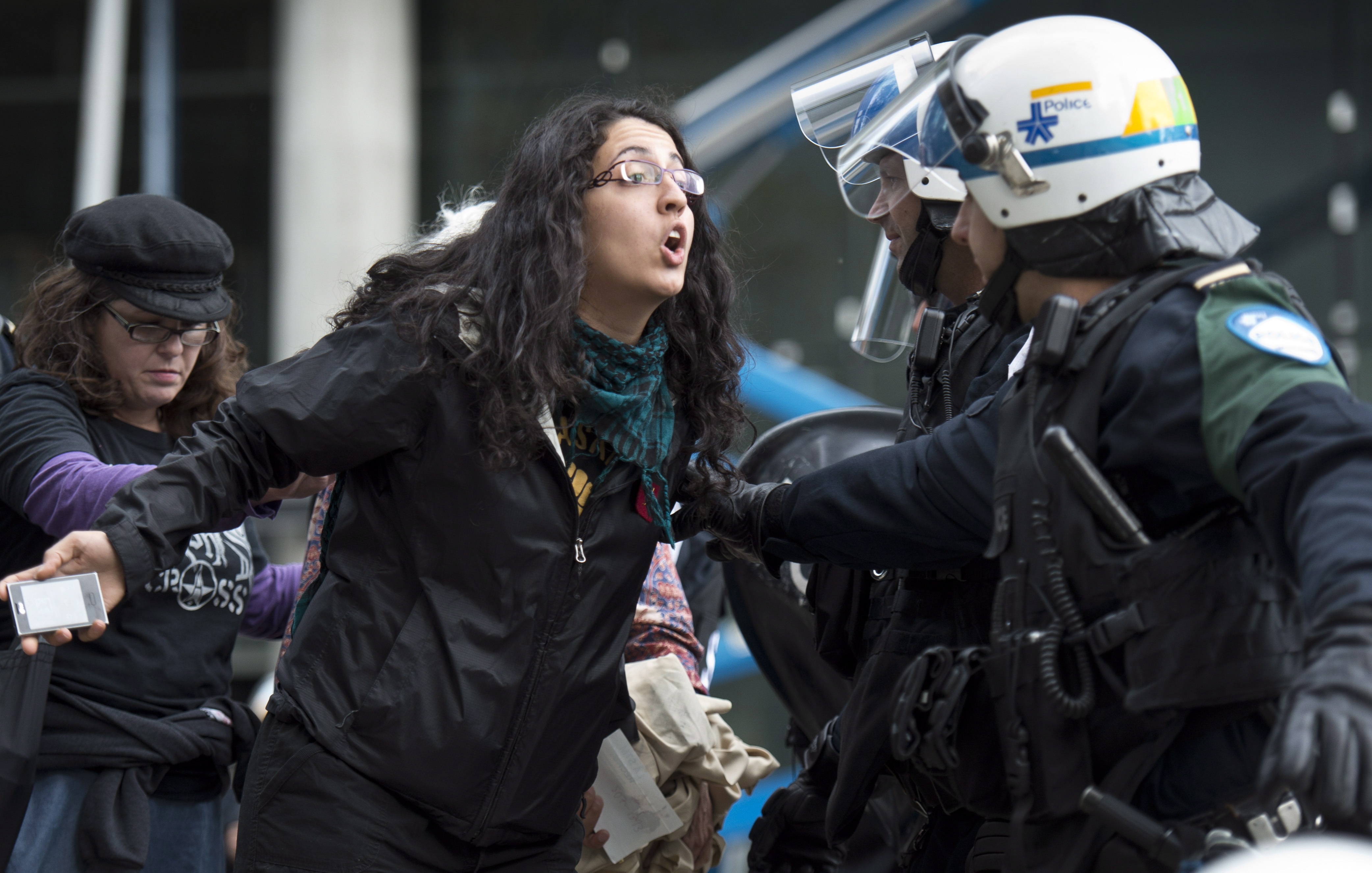 Le sergent Latour a précisé que trois manifestants ont été arrêtés pour voies de fait sur des agents de la paix. Vingt-neuf autres ont été interpellés en vertu du règlement municipal P-6 qui oblige tout manifestant à fournir un itinéraire aux autorités. Ils ont été relâchés mais devront payer une amende de plusieurs centaines de dollars.