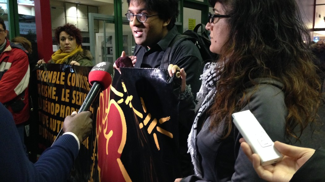 «Nous avons été cités comme étant une des craintes du ministre. Ces craintes ne sont pas fondées sur des faits. Tout ce qu’on a fait, c’est lancer un appel pour un rassemblement à l’extérieur de la salle où se déroulerait l’événement pour dénoncer la charte. Nous y voilà, et tout se passe très bien», a lancé la porte-parole avec sa banderole à la main.