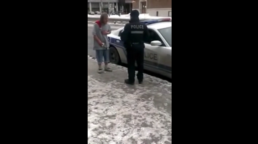 Les internautes peuvent voir un policier interpeller un sans-abri et l’accuser d’avoir été agressif à l’endroit de piétons, qui auraient porté plainte contre lui au 911.