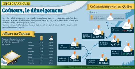 Les villes québécoises engloutissent des fortunes chaque hiver pour retirer des rues le fruit des tempêtes. À Montréal, le budget du déneigement est de 153 M$, soit 31 M$ de moins que ce qu’a coûté la Grande Bibliothèque du Québec.