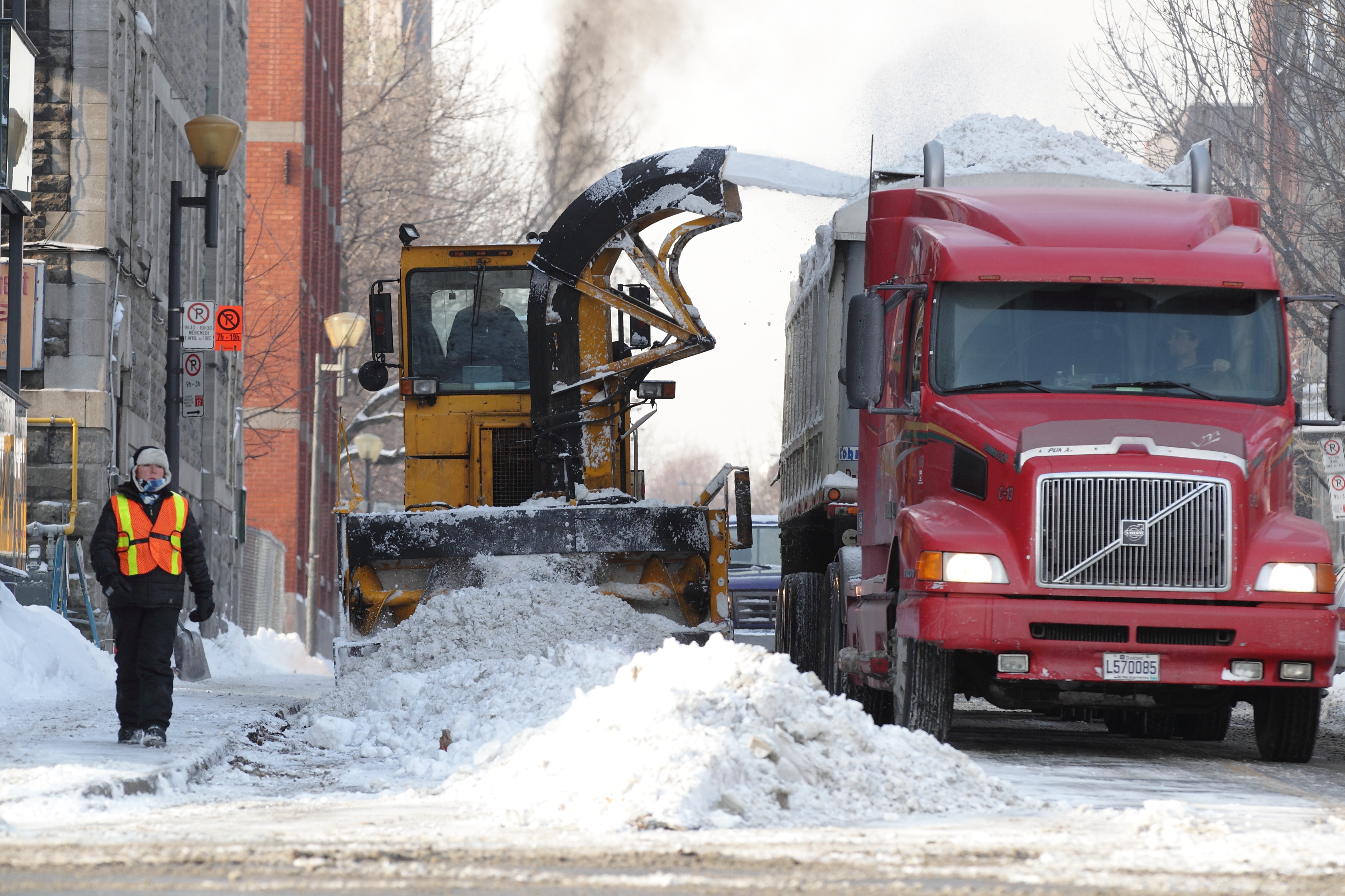 L’arrondissement de St-Laurent avait chargé dimanche matin environ 30% de la neige dans les rues du secteur. Dans Ville-Marie, près de 40% du travail était effectué et ce nombre montait à 50% à Outremont. La Ville prévoit en moyenne 4 jours pour effectuer la totalité du déneigement dans un arrondissement. Ces trois secteurs devraient ainsi avoir terminé leurs opérations mercredi en après-midi.