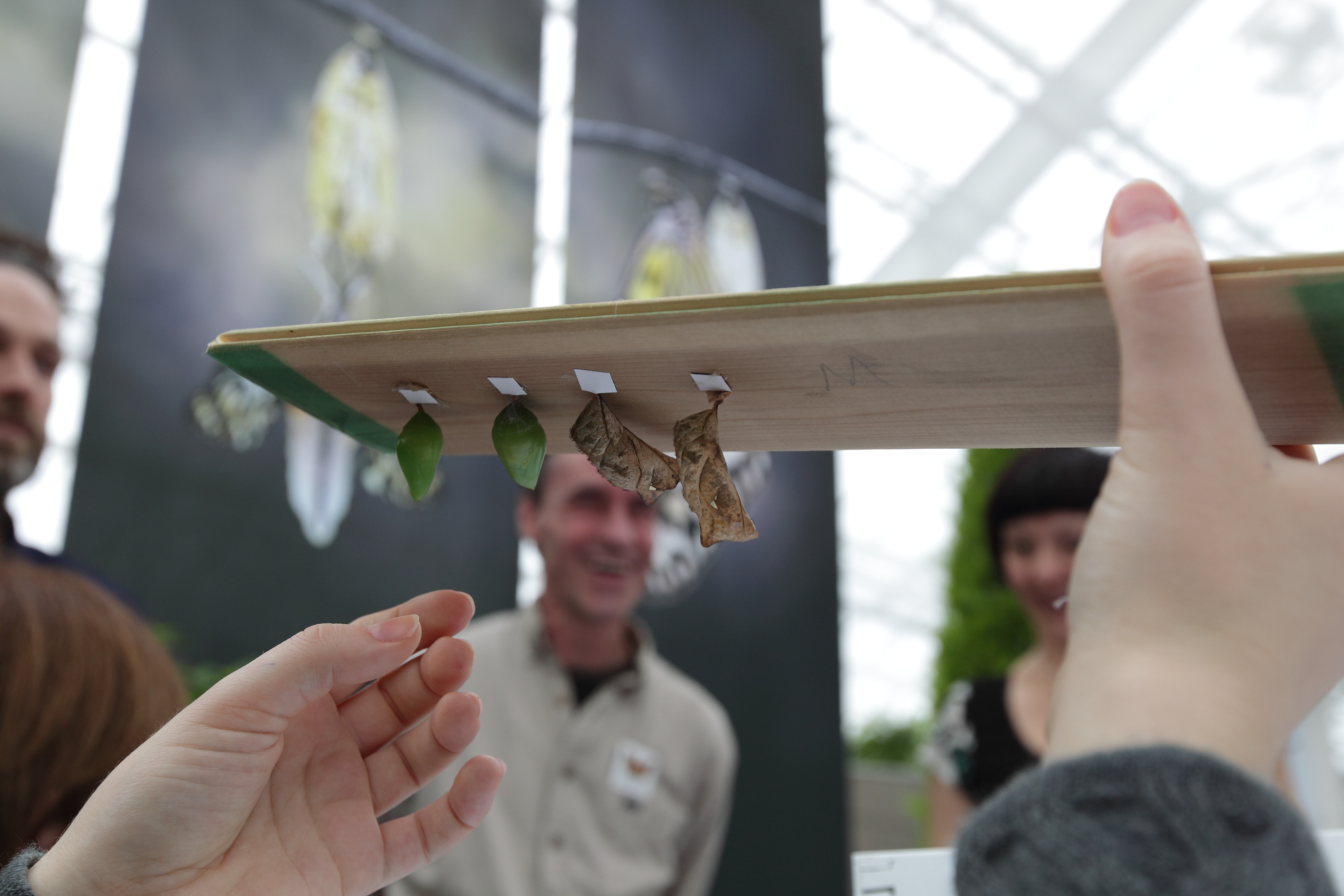 «Les chrysalides sont mystérieuses. Les chercheurs ne savent pas encore tout à fait ce qui se passe dans celles-ci. Comme elles sont très vulnérables, elles sont cachées et il est rare de les voir dans la nature. Pour se protéger, elles prennent aussi des aspects différents, comme des bourgeons, des feuilles mortes ou des bijoux intimidants aux couleurs vives», explique Sonia Charest, responsable de l’éducation et des programmes publics à l’Insectarium.