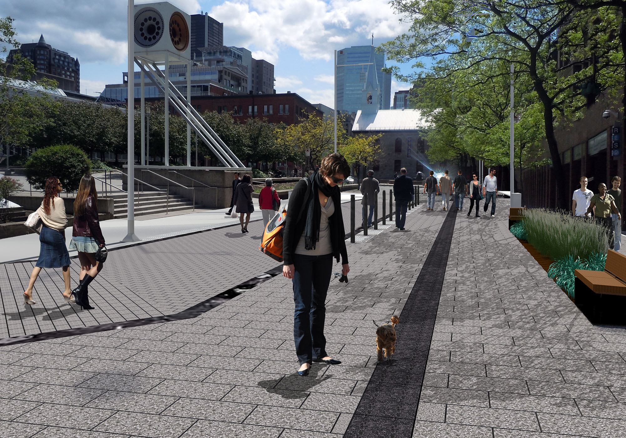 Un investissement de départ de 4,3M$ servira à réaménager le rue piétonne de la Gauchetière, en plus de permettre l’installation d’un nouveau mobilier urbain et l’implantation d’un système d’éclairage «assurant la sécurité la nuit».