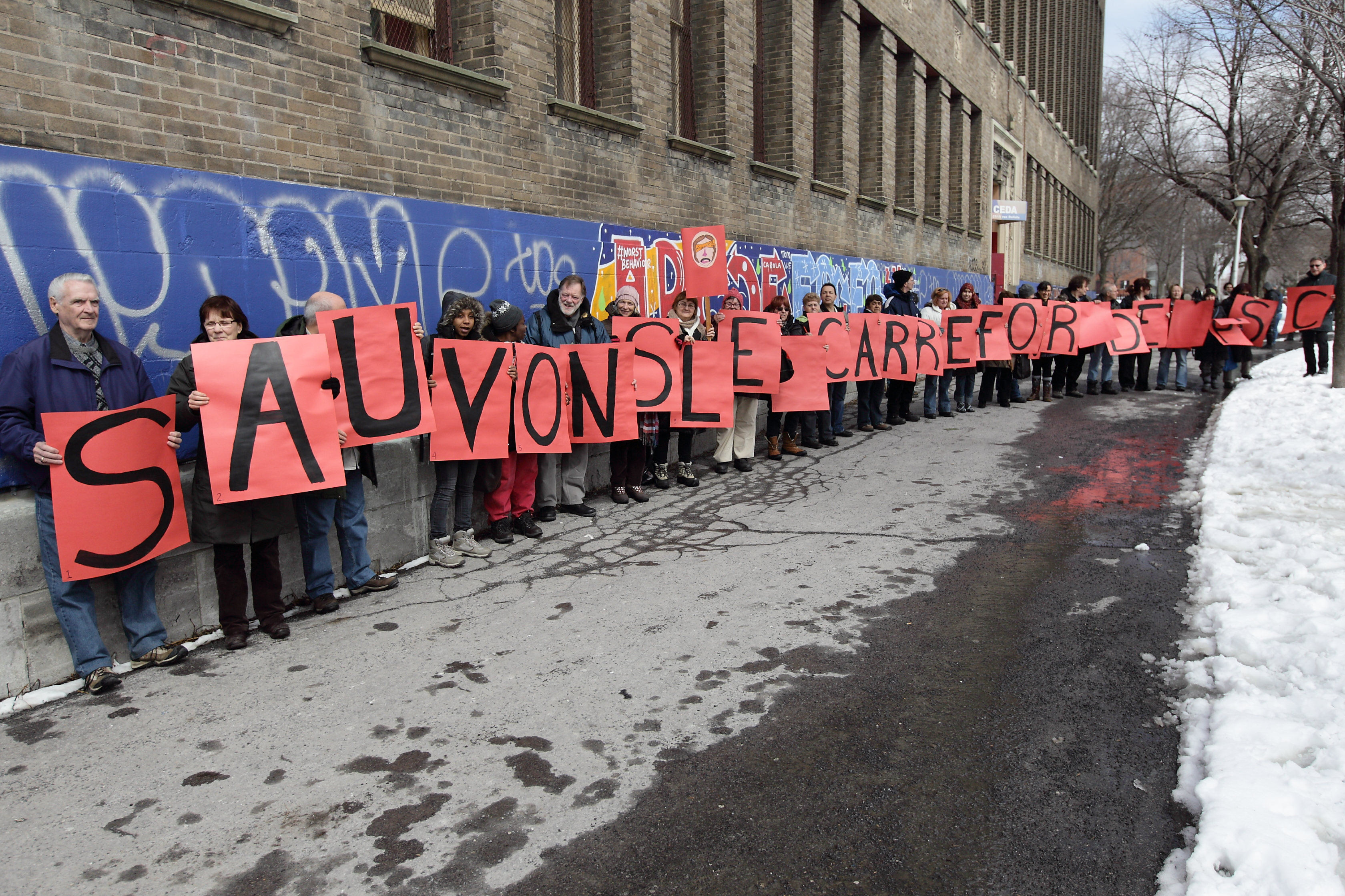 Une trentaine de personnes ont manifesté lundi pour sauver le Carrefour d’éducation populaire de Pointe-Saint-Charles.