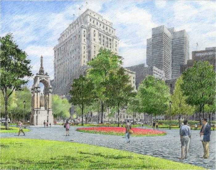 Plusieurs espaces gazonnés seront ajoutés, des chemins piétonniers en granit seront aménagés et des bancs et espaces floraux seront ajoutés. Un peu plus de 30 arbres devront être coupés pour cause de maladie ou pour respecter la stratégie arboricole, mais 90 arbres seront plantés et six arbres «de grande valeur» seront transplantés à l’intérieur du site.