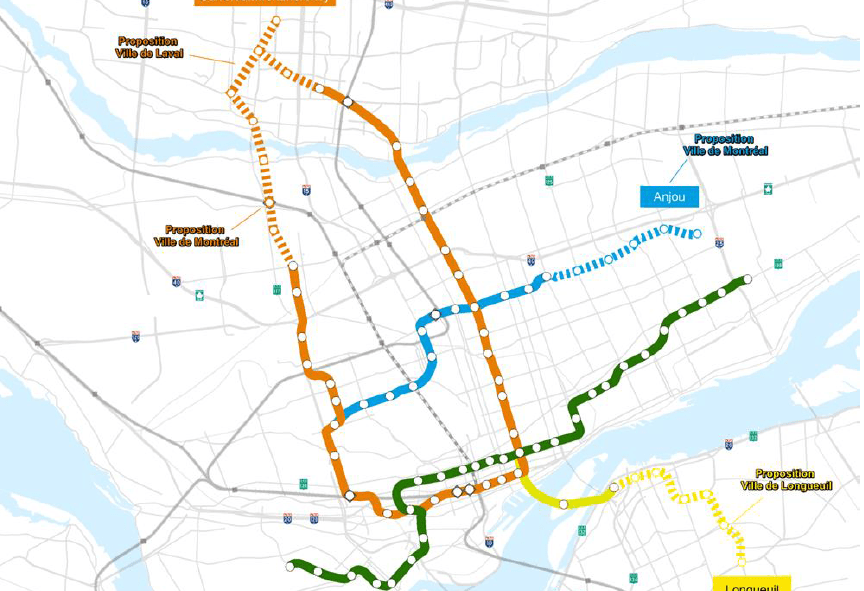 Le gouvernement du Québec a créé il y a cinq ans un bureau de projet au coût de 12M$ pour étudier «le parachèvement du réseau métropolitain de métro» qui était considéré par les maire de l’époque comme étant «la priorité incontournable en matière de stratégie durable». Il était envisagé de boucler la ligne orange, de rallonger la ligne bleue jusqu’à Anjou et de faire en sorte que la ligne jaune rejoigne l’hôpital Pierre-Boucher et le cégep Édouard-Montpetit.
