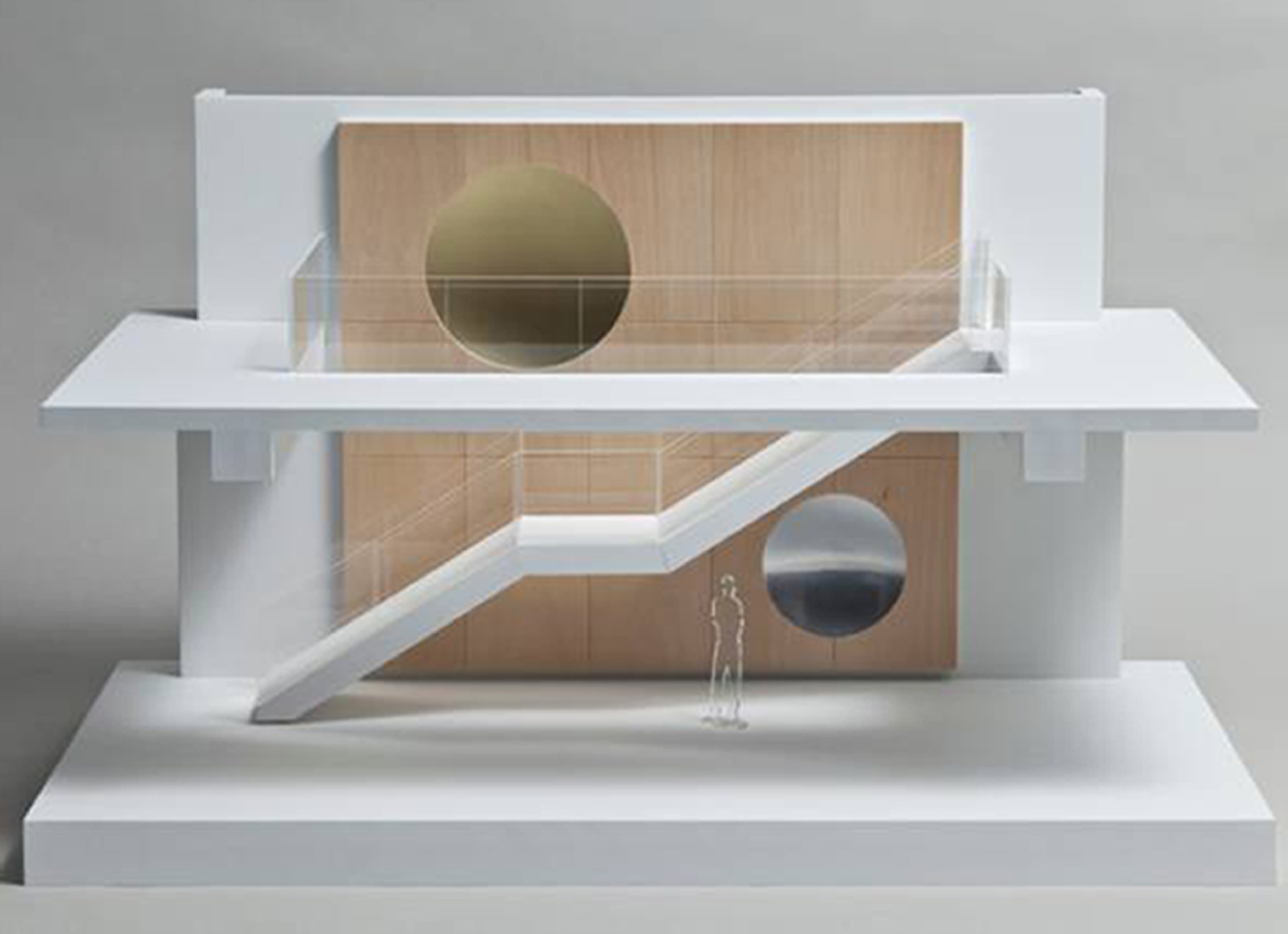 Pour le Centre du cancer, l’artiste Martha Townsend a voulu créer une œuvre lumineuse et réconfortante. «Parce que le cancer, c’est une réalité sombre», a-t-elle dit. Deux dômes concaves, l’un peint de blanc doré et l’autre de jaune doré, ont été disposés au-dessus et en-dessous d’un escalier. «Mon œuvre est abstraite, ce qui fait qu’elle est ouverte à l’interprétation, a mentionné Mme Townsend. Je ne voulais pas qu’il y ait une lecture précise.»