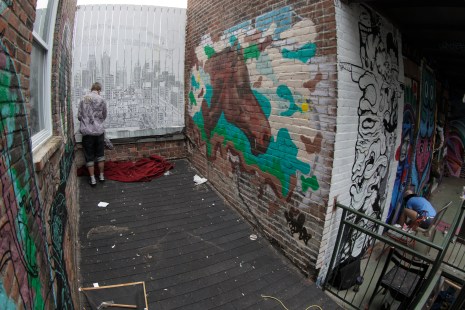 TurtleCaps n’a aucune idée de l’identité du propriétaire de l’immeuble, qui n’a pas donné son accord à l’opération. Cette galerie éphémère est donc illégale. Il croit toutefois que le bâtiment sera jeté à terre dans les prochaines années pour permettre la construction de condominiums. «Des condos de luxe se construisent tout autour d’ici, alors nous voulons lui donner une belle vie artistique avant sa disparition», a-t-il dit.