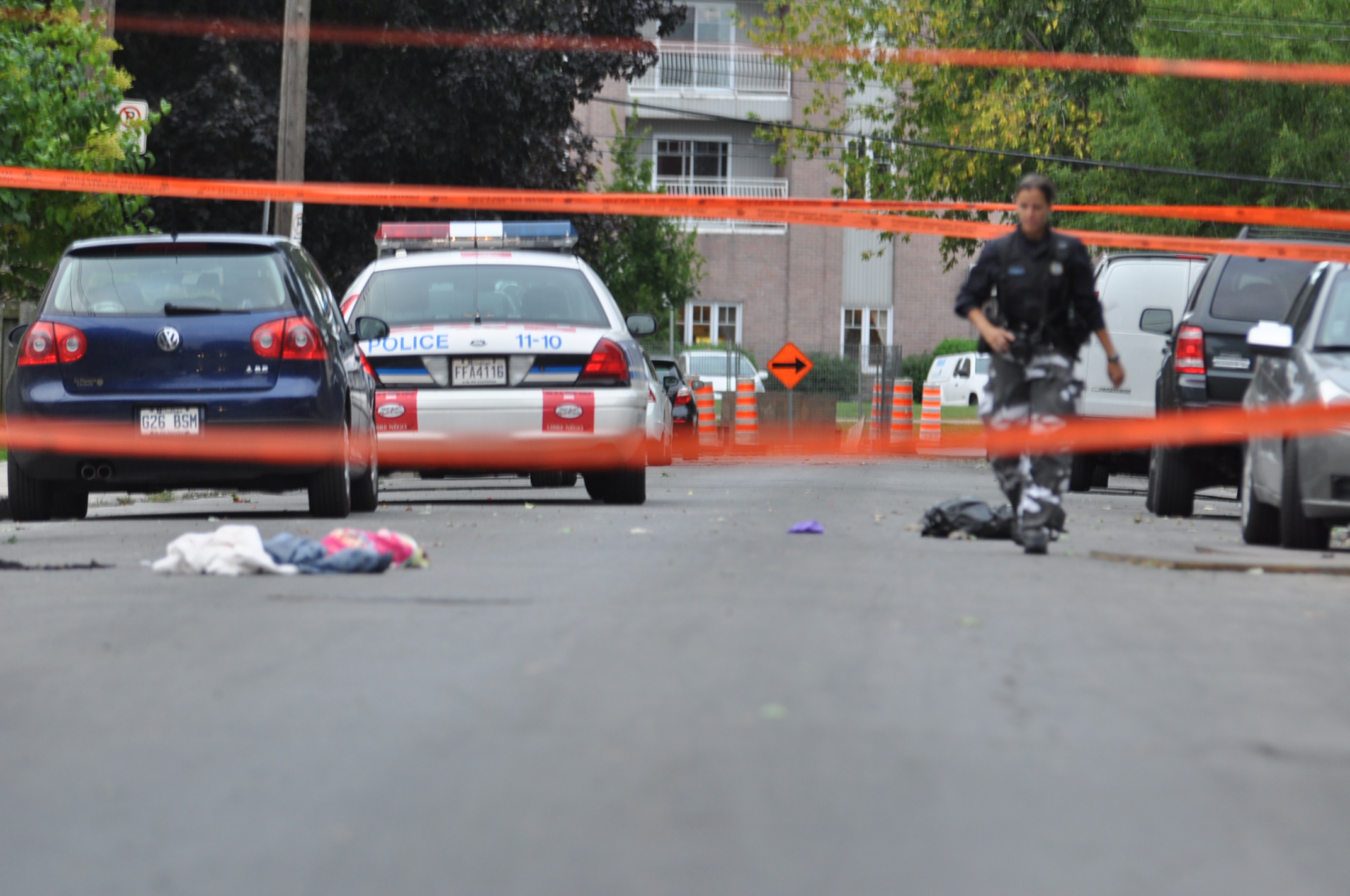 Une opération policière est présentement en cours pour arrêter les deux suspects. Des maîtres chiens ont été mis à contribution afin de collecter des éléments de preuve.