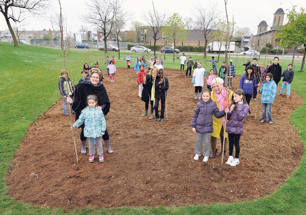 L’érablière fait partie d’un projet de plantation de 100 arbres dans le secteur. En plus des 25 érables du parc Villeray, 75 autres arbres d’espèces variées seront donnés pour des plantations privées et distribués par l’Écoquartier. Une vingtaine de ces arbres sont déjà promis à l’école secondaire Georges-Vanier. «On veut prouver que l’environnement est important pour nous», a précisé Habib, 12 ans, qui fait partie du groupe les Verts de terre de l’école Georges-Vanier. Ce groupe, d’une dizaine de jeunes de secondaire 1, sera mandaté pour concevoir l’aménagement des arbres reçus par l’école. «On voudrait mettre les arbres près de la clôture pour cacher l’autoroute», a ajouté Magalie, 13 ans.