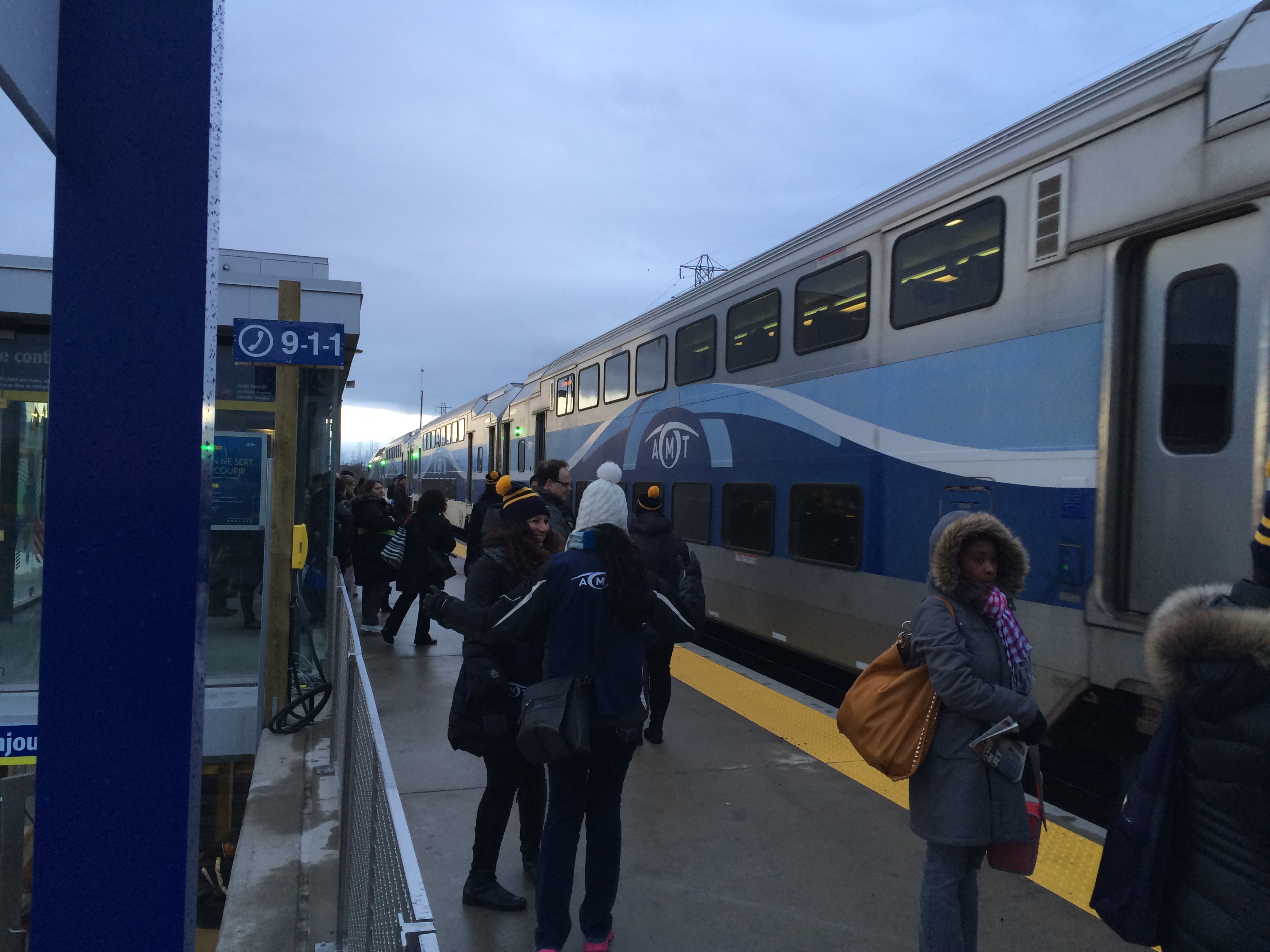 Gare Anjou: terminus. Cette fois, le parcours a été effectué en 29 minutes. Probablement parce que les arrêts sont moins longs vu que dans cette direction, hors de l’heure de pointe, peu d’usagers montent à bord.