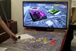 Sur chaque table, où il y a une carte du secteur, on peut placer des vignettes en papier représentant divers éléments : zones résidentielles, commerciales et industrielles. Une caméra filme la scène et détecte les vignettes. Résultat: elles sont remplacées par des modèles 3D et projetées sur un écran. Le tout est agrémenté de maquettes traditionnelles.