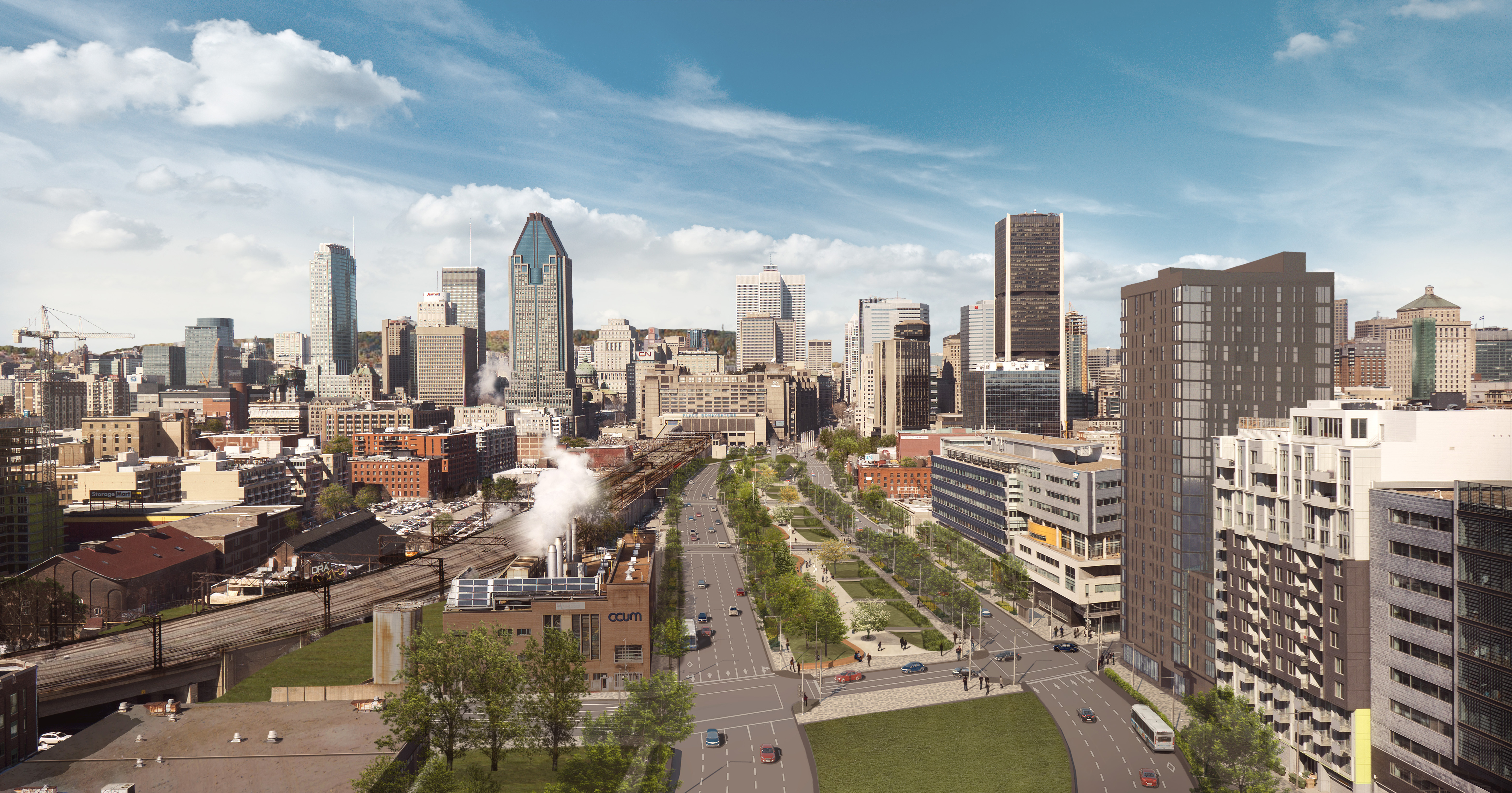Au centre du boulevard urbain, une place publique de 42 mètres de large sera créée. Des arbres y seront plantés et des œuvres d’art y seront installés.