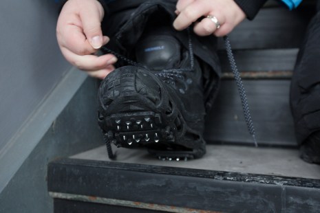 Il est maintenant difficile pour les résidants de Montréal de trouver des crampons à attacher à leurs souliers pour mieux circuler sur les trottoirs gelés.