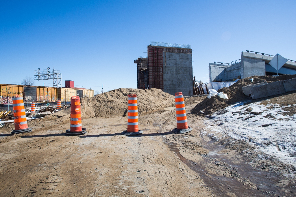 «Le MTQ travaille actuellement à la conception de deux ponts à étagement qui passeront au-dessus des voies ferrées pour compléter le lien, explique la porte-parole du Ministère, Sarah Bensadoun. Il n’y aura donc pas d’empiètement sur les terrains des compagnies ferroviaires canadiennes».