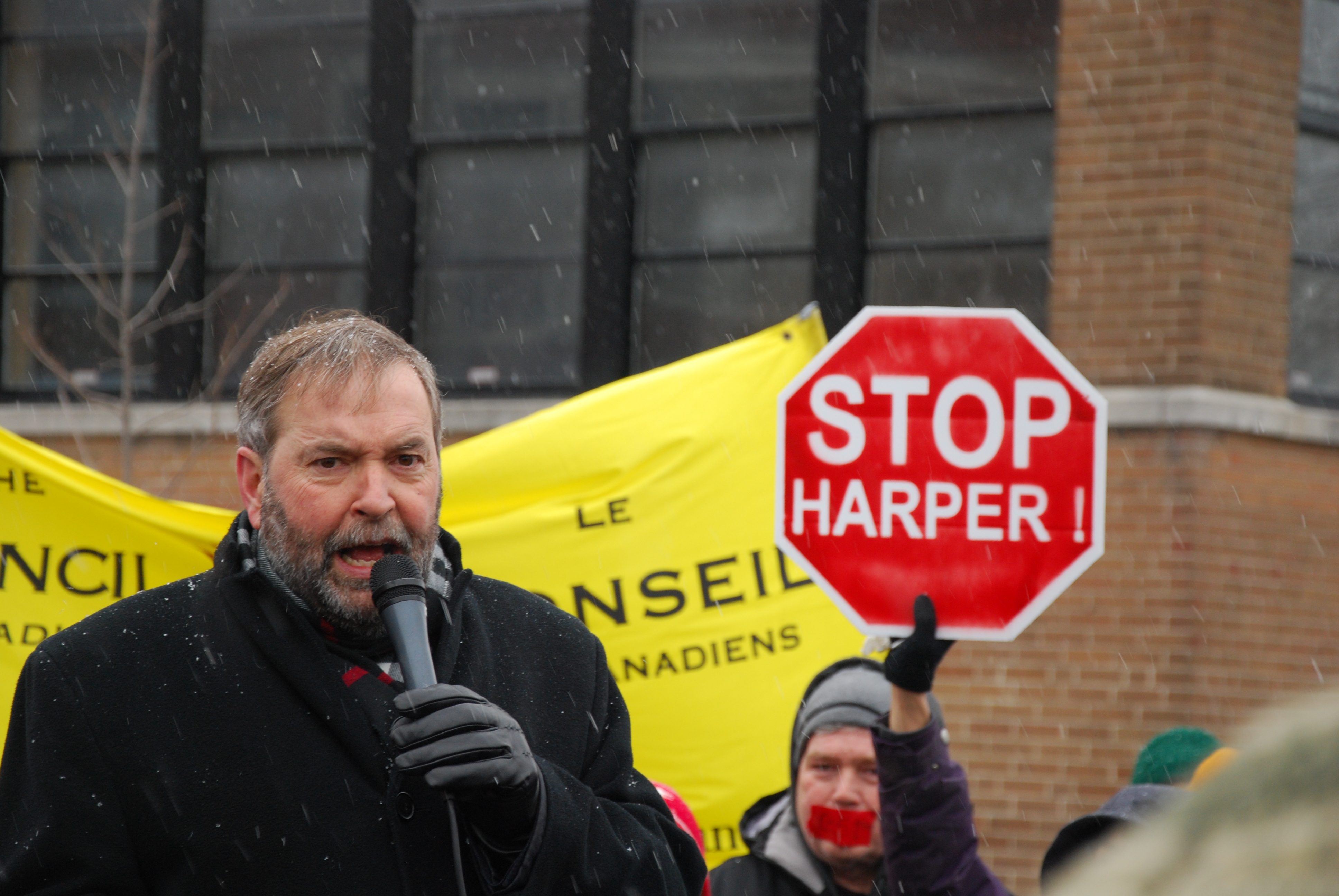 Plusieurs personnalités politiques ont participé à la manifestation, dont le chef de l’opposition officielle à Ottawa, Thomas Mulcair, sept autres députés du Nouveau Parti démocratique (NPD) , ainsi que le chef adjoint du Parti vert du Canada, Daniel Green. M. Mulcair n’a pas manqué de décocher une flèche au chef du Parti libéral, Justin Trudeau, dont le bureau était le point d’arrivée de la manifestation. «Quand on s’oppose à quelque chose, on vote contre, a-t-il dénoncé dans son discours, au début de la manifestation. En 1970, on s’est tenu debout contre la Loi sur les mesures de guerre de Pierre Trudeau et cette fois-ci, on est le seul parti d’opposition qui va se tenir debout contre le projet de loi C-51 de Stephen Harper.» Thomas Mulcair n’a toutefois pas marché avec le contingent et est parti directement après son discours.