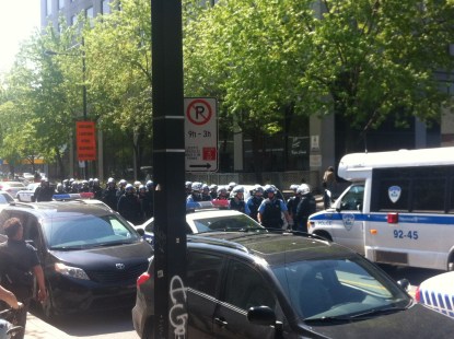 Les manifestants s’étaient donné rendez-vous vers 9 h 30 à la place Émilie-Gamelin. Une centaine de manifestants a réussi à investir les lieux, scandant «Scab! Scab!». Par la suite jusqu’à 300 personnes se sont massées pour chahuter à l’intérieur de l’université.