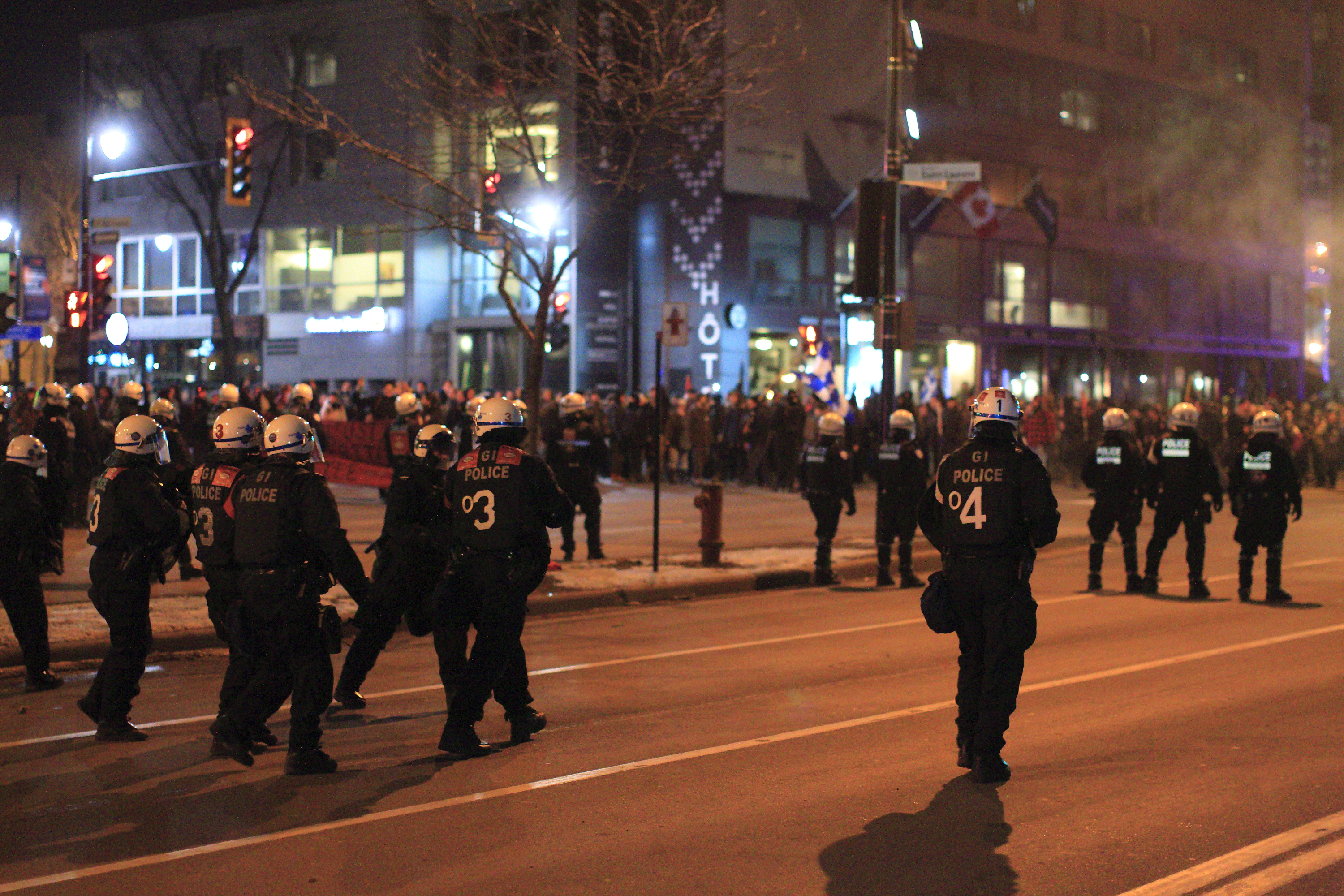 La première des marches nocturnes contre les politiques d’austérité du gouvernement québécois a donné lieu à des affrontements entre policiers et manifestants mardi soir, même si la plupart des participants se sont comportés de façon pacifiste.