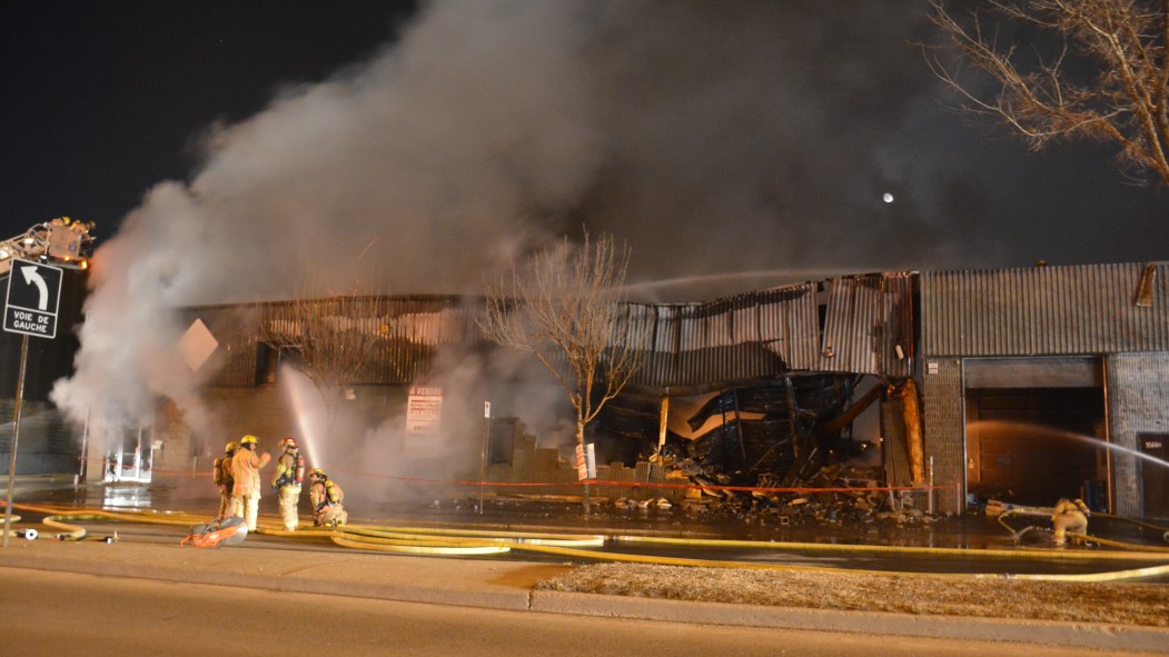 Un bâtiment abritant une compagnie de transport et une entreprise d’excavation a été ravagé par les flammes, dans la nuit de mardi à mercredi, dans l’est de Montréal.