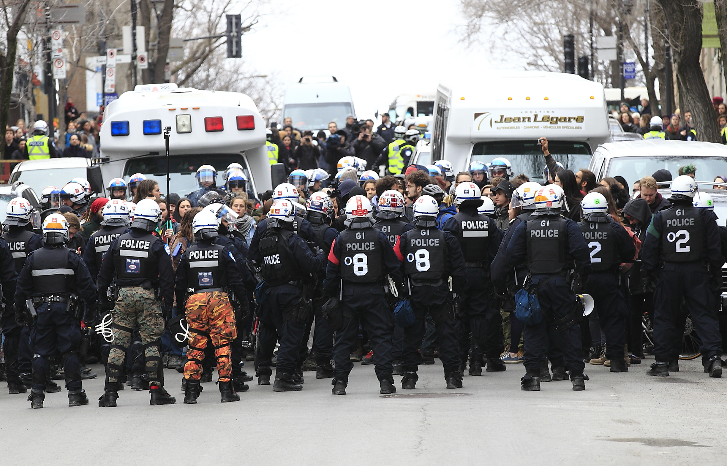 Quelques secondes après le départ des manifestants sur la rue Saint-Denis en direction sud, le SPVM a immédiatement déclaré la manifestation illégale puisqu’aucun itinéraire n’avait été fourni. La trentaine de policiers dépêchés sur les lieux avant le début de la marche ont aussitôt encerclé une partie des manifestants, entre les rues Sherbrooke et Ontario.