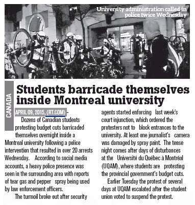Manifestations, arrestations et occupation, tous des mots liés à la couverture médiatique internationale de l’Université du Québec à Montréal (UQAM) dans les deux dernières semaines. Des termes qui semblent d’ailleurs placer l’institution au cœur même des maux des manifestations contre l’austérité du printemps 2015.
