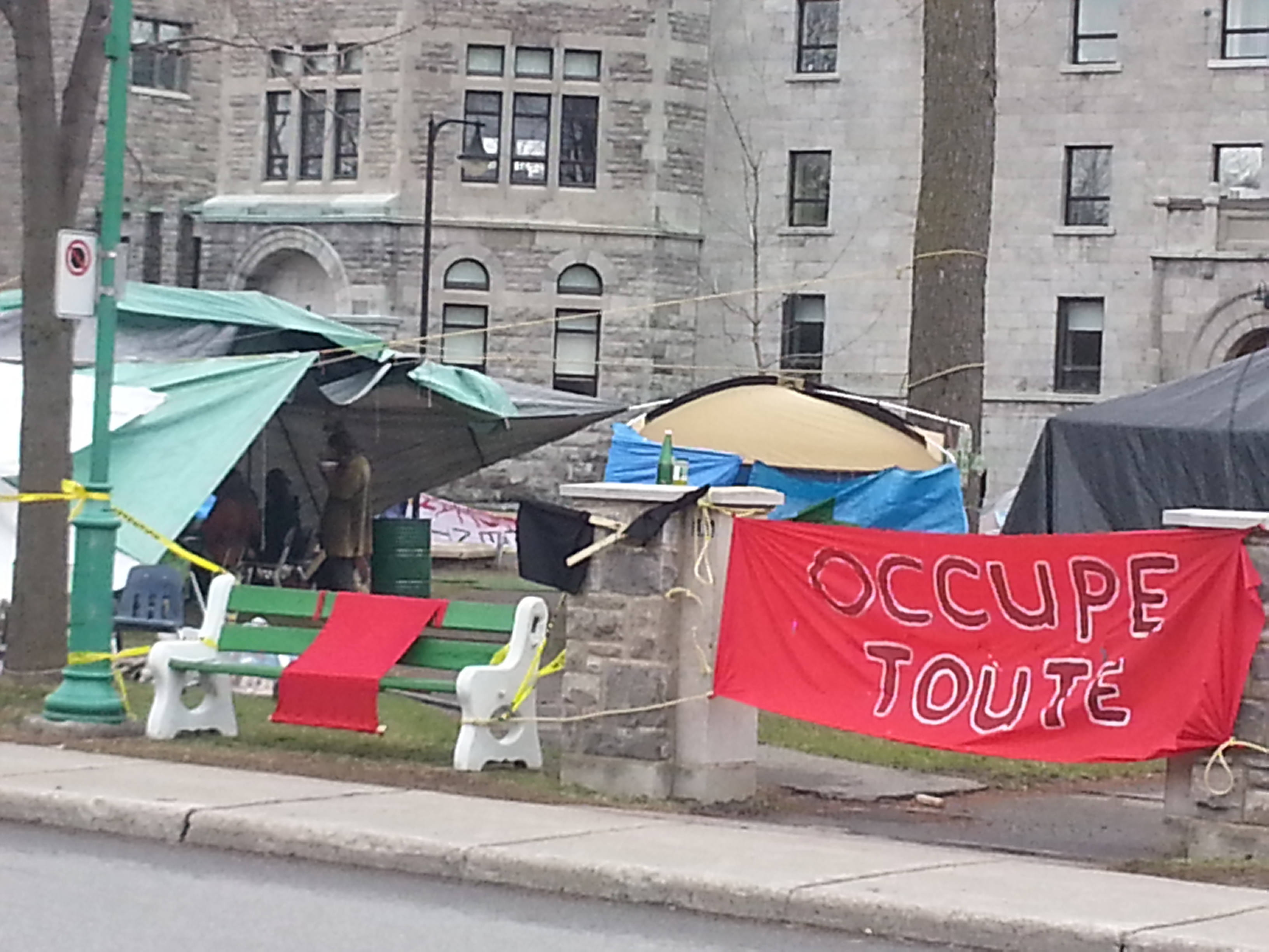 Depuis lundi, une cinquantaine de tentes multicolores ont envahi le parterre du cégep de l’avenue Sainte-Croix. Le mouvement de protestation «Occupe toute» contre les mesures d’austérité du gouvernement Couillard et les hydrocarbures, se veut une alternative à la grève et aux manifestations souvent réprimées par les policiers.