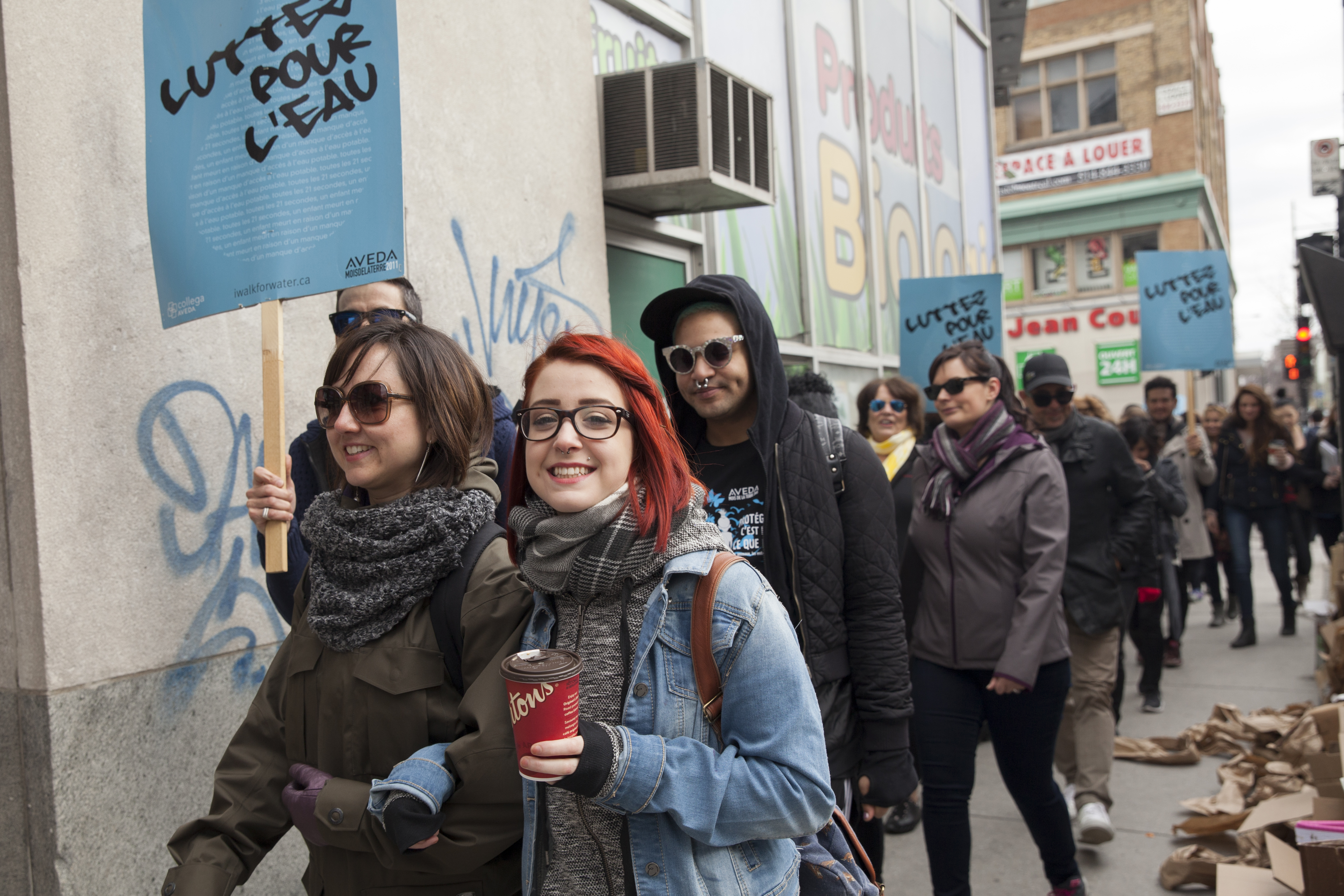 Plus de 80 personnes, la plupart travaillant pour l’entreprise Aveda, ont marché six kilomètres, mercredi matin, à l’occasion du Jour de la Terre, pour sensibiliser la population montréalaise au manque d’accès à l’eau potable dans plusieurs parties du monde.