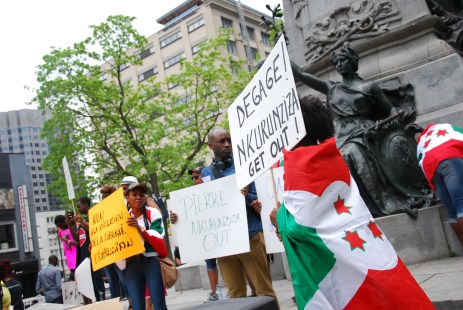 Quelques centaines de personnes de la diaspora burundaise ont manifesté samedi après-midi dans les rues de Montréal. Ils dénoncent le fait que le président du Burundi, Pierre Nkurunziza, brigue actuellement un troisième mandat malgré le fait que la limite de mandats présidentiels soit établie à deux par l’Accord de paix d’Arusha signé en 2000 après plusieurs années de guerre civile.