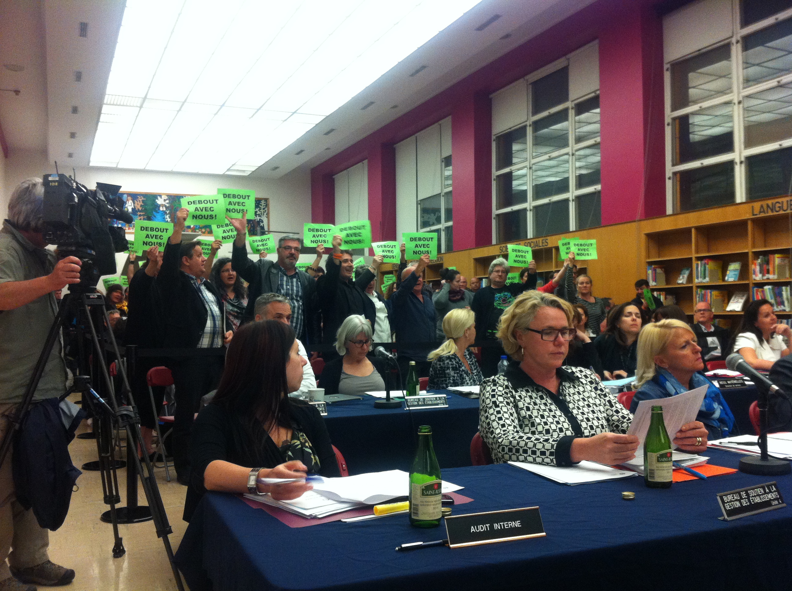 Une trentaine d’employés de tous les secteurs de la CSDM ont pu témoigner de l’effet que les coupes anticipées auraient sur leur travail. Brandissant des placards «Debout avec nous», ils ont enjoint les commissaires de refuser d’adopter le plan. En vain.