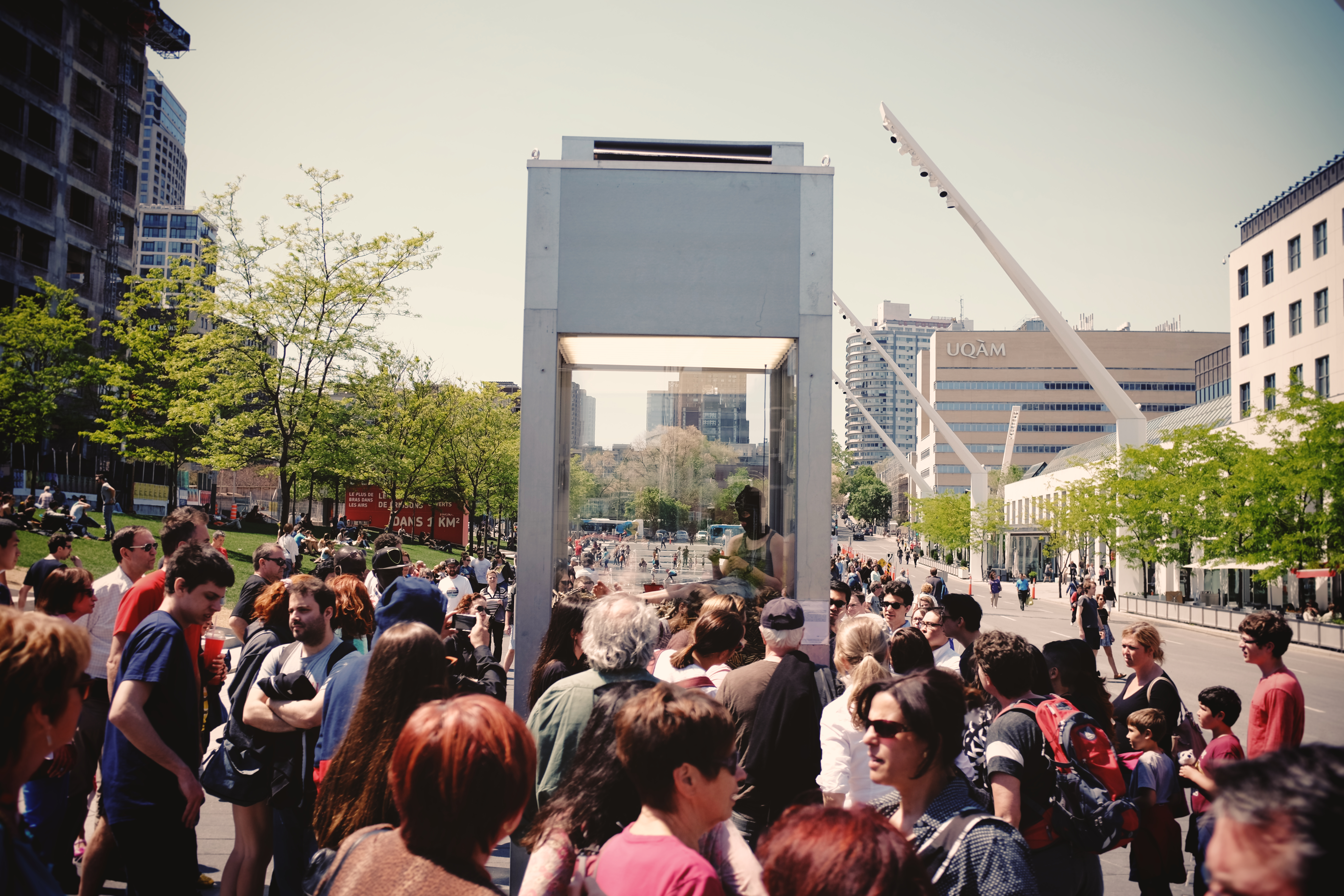 Dans le cadre du Festival TransAmériques (FTA), une exposition d’art vivant de l’artiste Dries Verhoeven, qui a pour but de «confronter les gens à leurs tabous», se déroule depuis le 21 mai à la place des Festivals. Jusqu’au 30 mai, différents tableaux humains mettant en vedette des acteurs se succéderont chaque jour dans une sorte de présentoir en vitre.