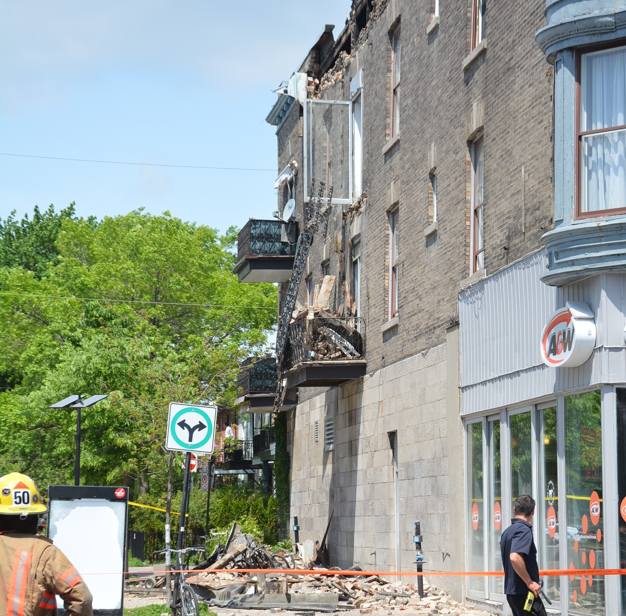 C’est à 10h40 ce matin que le service de sécurité incendie de la Ville de Montréal a reçu un appel, alors qu’un mur de briques venait de s’effondrer du haut d’un édifice de trois étages, à l’angle de l’avenue Mont-Royal et de la rue Marquette, au 1651 de l’avenue Mont-Royal, emportant dans sa chute, le balcon d’un des logements.