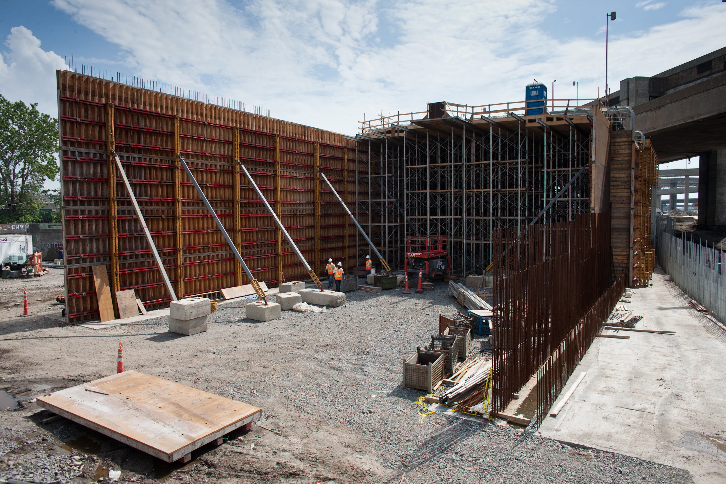 Guy Rivard, coordonnateur à la réalisation des travaux au MTQ, nous fait faire le tour du propriétaire. On roule sur un chemin de terre cahoteux au pied de la falaise Saint-Jacques pour se retrouver au cœur des travaux de réaménagement de la cour Turcot. On assiste à un ballet de pelles mécaniques et autres véhicules lourds.