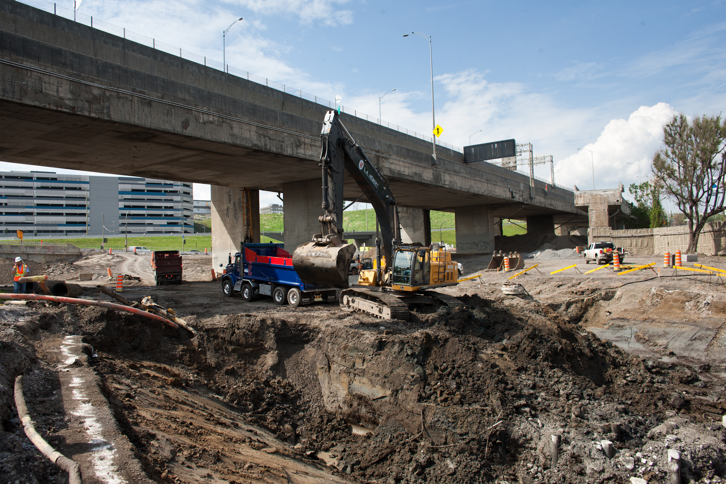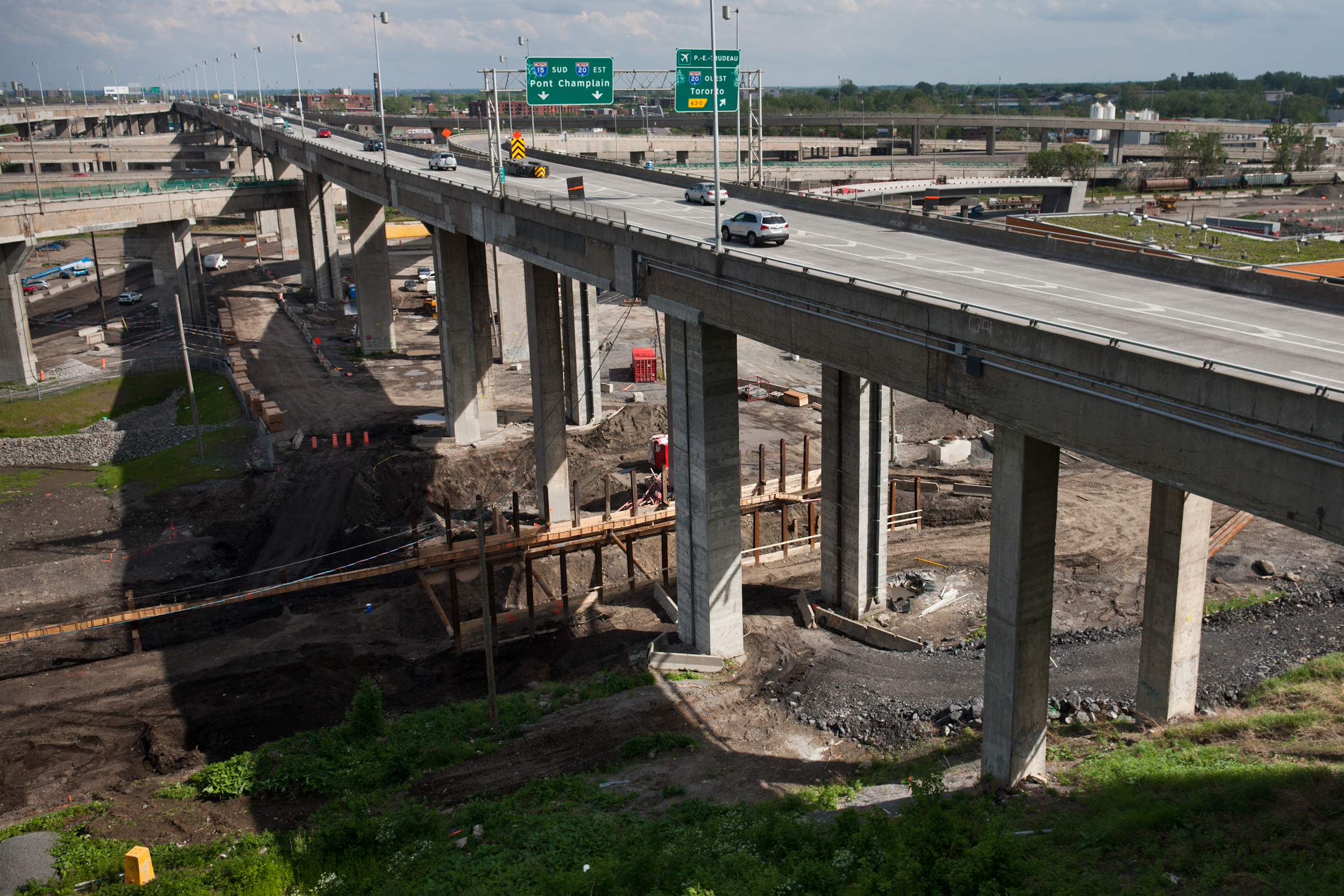 Pendant ce temps, les automobilistes circulent dans l’échangeur au-dessus de ce vaste chantier. À terme, les voies qui ont une hauteur moyenne de 18 mètres avec un sommet à 30 mètres seront démolies quand les nouvelles auront été construites en dessous. Leur démolition constituera une opération délicate. «Ça va être de la chirurgie», anticipe Guy Rivard.