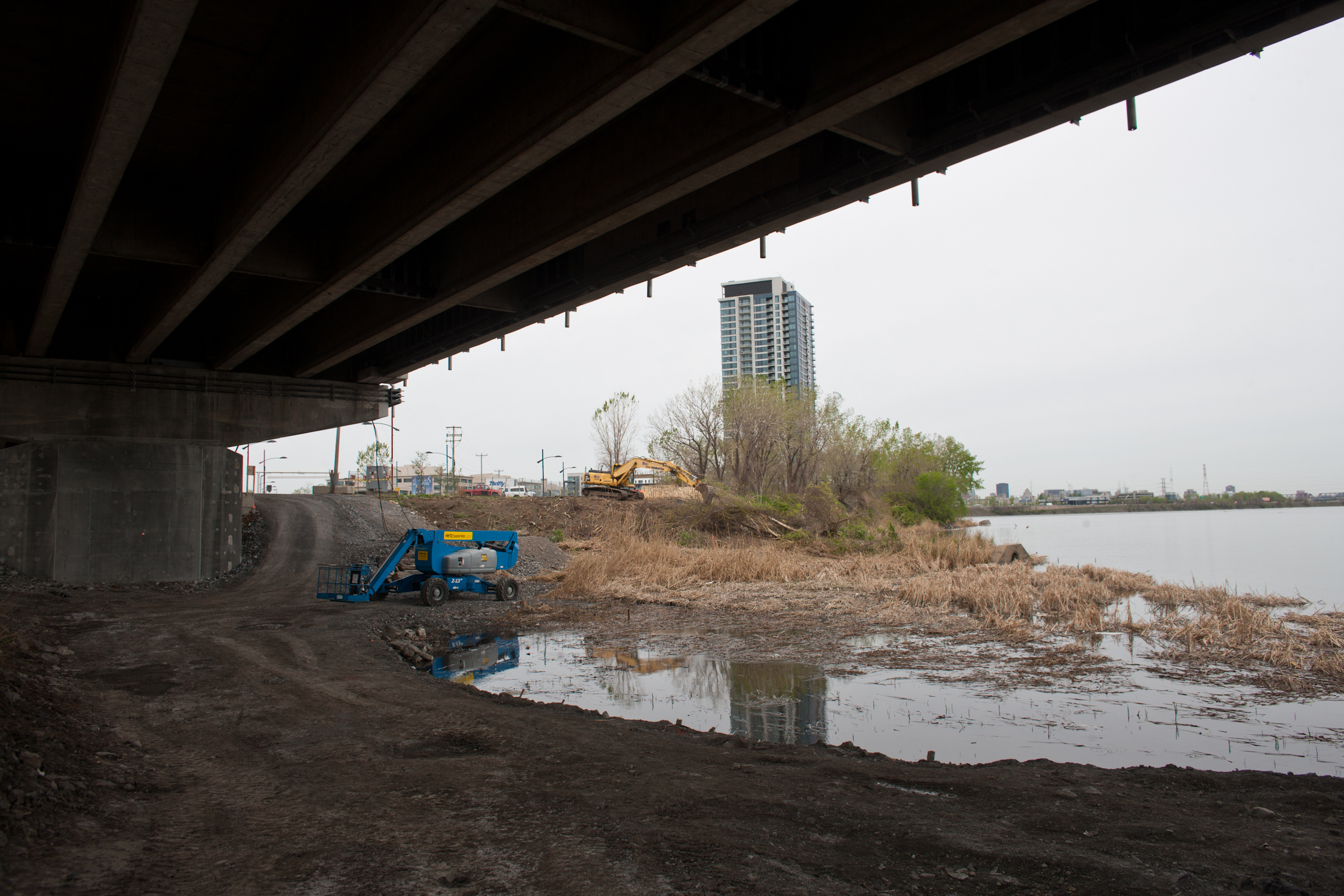 Ce sont les résidents de la Pointe-Nord qui seront les plus touchés par les va-et-vient incessant. Sur la pointe ouest de L’Île-des-Sœurs, le consortium construira une jetée de 500 m de long par 100 m de large, représentant 250 000 m2 de volume d’empierrement ce qui équivaut à ce qui équivaut à huit terrains de football.