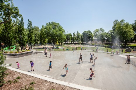 Au sud du parc, des jeux d’eau et des aires de jeu sécurisées pour les enfants se sont ajoutés à la place publique et à la fontaine, situées dans la partie nord.